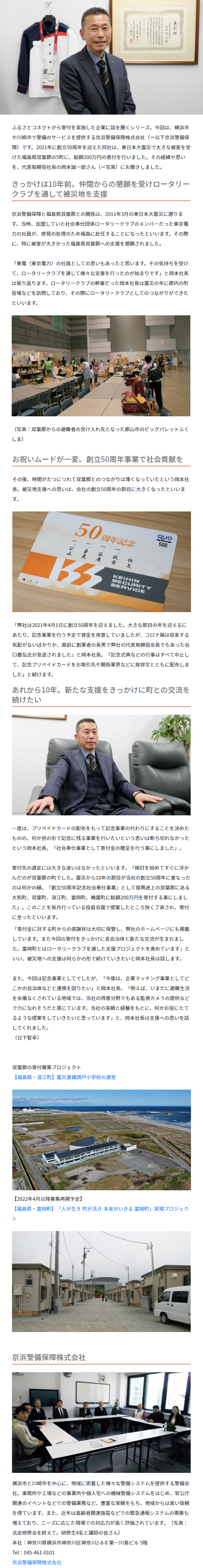 【寄付企業に聞く】50周年の記念行事で復興への思いを届ける~神奈川県・京浜警備保障株式会社~